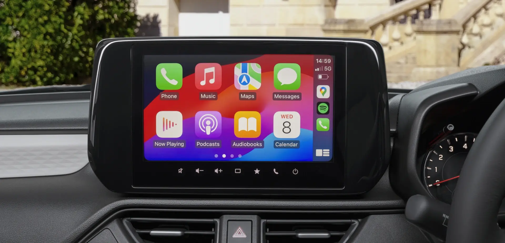 The 9-inch high-definition touchscreen with Android Auto™ and wireless Apple CarPlay® in Swift is angled towards the driver, for vibrant, gorgeous colours and fast, responsive display of all your driving info and media on the road.